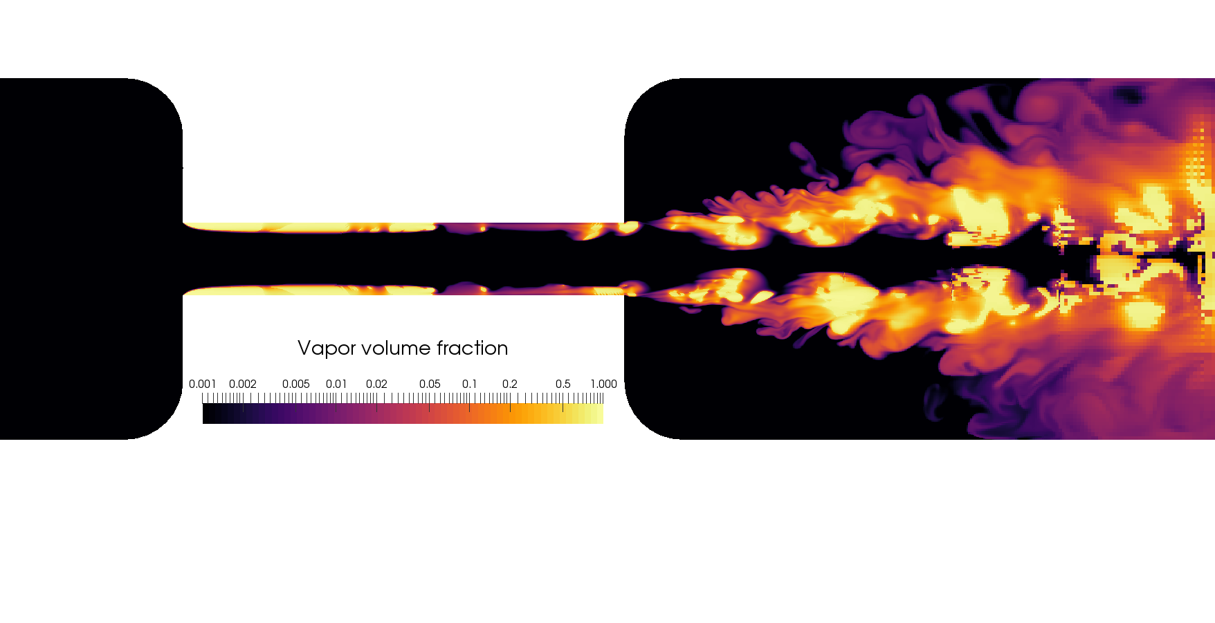 At a fundamental level, we are studying the fluid mechanics of metered-dose inhalers such as asthma puffers. These devices work by releasing a small quantity of propellant (a liquid which boils to a gas at room temperature and pressure). The drug is either suspended as small particles in the propellant, or dissolved in it, along with a few other chemicals required to improve the solubility and shelf life. When the propellant leaves a small nozzle in the inhaler, it does so at high speed, forming a spray, which fragments the liquid into an aerosol which you can then breathe in. The fluid flow inside an inhaler is very complex, as it is a mixture of gas, liquid and solid particles, is boiling as it flows, and can also be turbulent. Predicting the flow of the propellant and how it will behave under different circumstances is a very challenging physics problem. We want to be able to understand how the behaviour of the device might change (and how we could control it) if we switch to more environmentally friendly propellants.