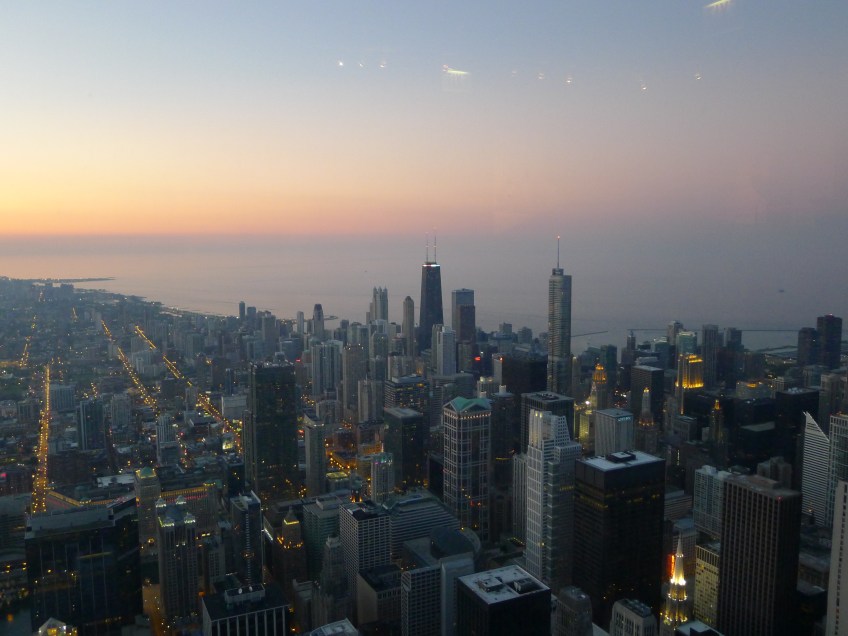 Spider-Dan climbs the John Hancock Tower (the building with two aerials that looks like a Futurama robot) – see YouTube